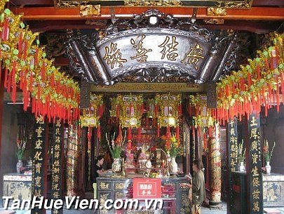 Vào bên trong ngôi chùa, du khách sẽ choáng ngợp trước một “rừng” hoành phi câu đối bằng chữ Hán được treo và ốp cột từ gian tiền điện đến gian chính điện, với nội dung ca ngợi công đức của các vị thần. Phía bên trái (nhìn từ ngoài vào) là bàn thờ Bạch Hổ uy nghi, bên phải là bàn thờ của Thanh Long hùng dũng – đây vừa là yếu tố phong thủy, lại vừa là vật linh nhằm để trấn giữ tà ma, xua đi những điều xui xẻo, không hên.