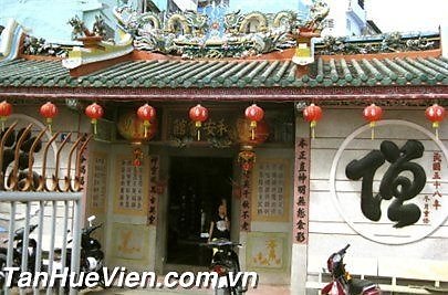 Chùa được cất theo hình chữ Phu – tượng trưng cho sự ấm no, phú quý. Chùa cất tuy không cao nhưng thoáng đãng, mang đậm màu sắc kiến trúc Trung Hoa. Mái chùa lợp ngói ống phủ lớp rêu phong. Trên nóc có tượng lưỡng long chầu nguyệt – cách trang trí truyền thống trong các ngôi chùa Hoa. Trên các gờ mái cũng có tượng rồng, kỳ lân nằm trải dài. Phía trước mái hiên chùa có treo một dãy đèn lồng đỏ.