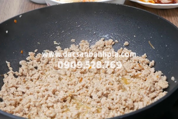 Thịt heo băm là một trong những nguyên liệu quan trọng của món hủ tiếu Nam Vang. Để món ăn có mùi vị thơm ngon nhất, bạn cần chọn loại thịt tươi ngon, có cả nạc và mỡ sau đó mang đi xào săn. Trước tiên bạn cần phi thơm hành tỏi băm nhuyễn sau đó cho thịt vào đảo đều, chia đôi phần thịt 1 nửa để cho vào nồi nước lèo, 1 nửa trộn chung với hủ tiếu.
