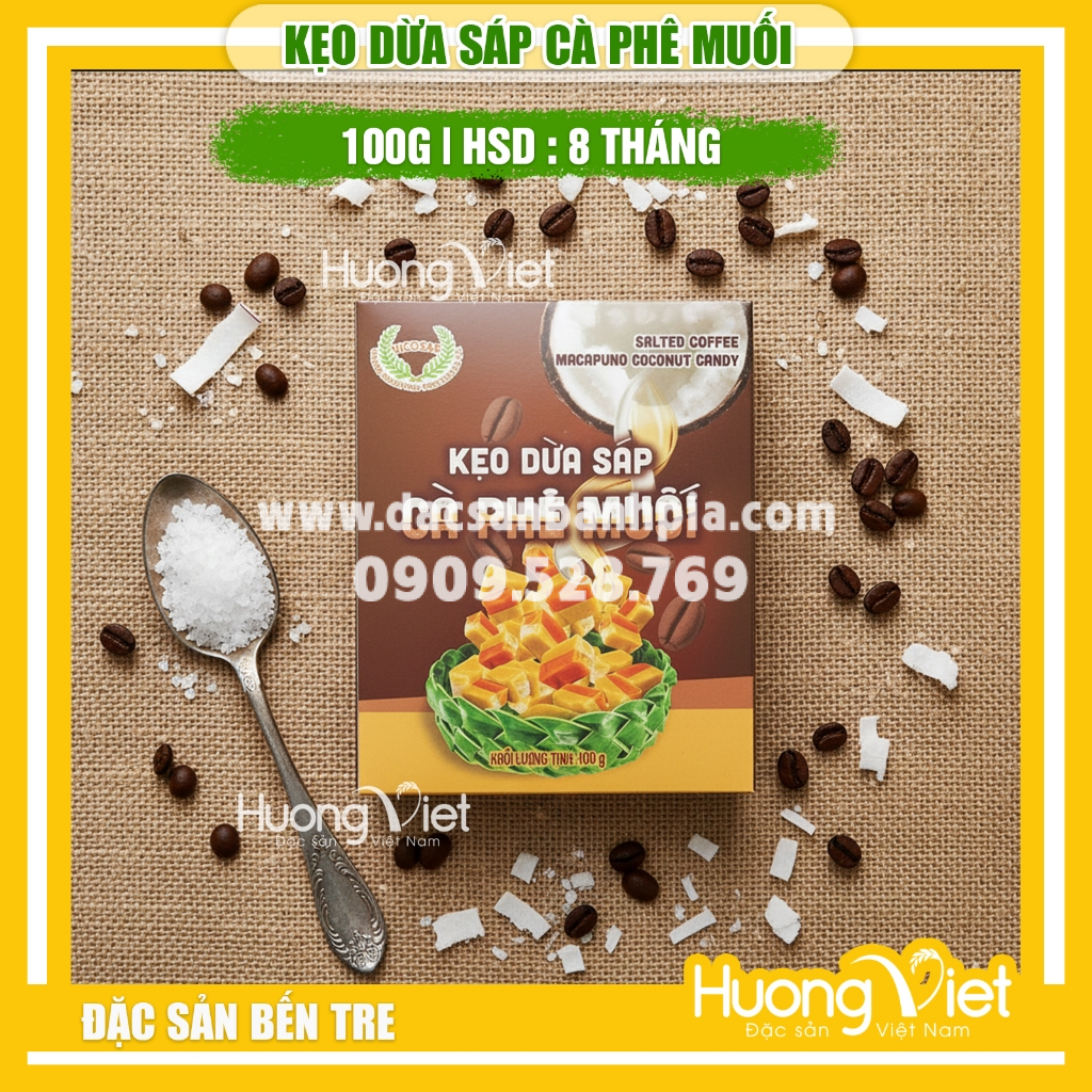 Kẹo dừa sáp vị cà phê muối VICOSAP hộp 100g – một kiểu ngọt vừa đủ