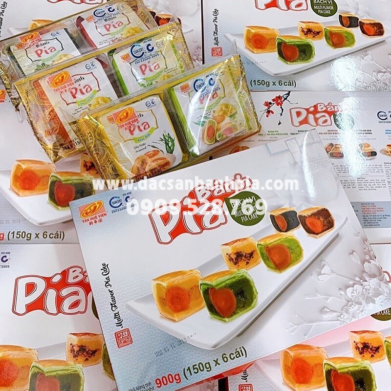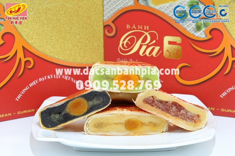 Nhắc đến hộp quà bánh pía thượng hạng 6 vị chắc hẳn nhiều người sẽ thích thú lắm cho xem. Bánh gồm nhân đậu sầu riêng, rong biển, đậu đỏ sầu riêng, đậu xanh sầu riêng lá dứa, mè đen sầu riêng, trà xanh. Với bào bì sang trọng, chất lượng tuyệt hảo thích hợp để sử dụng làm quà biếu tặng trong dịp trung thu.